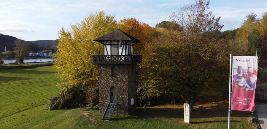 Auf dem Gelände der RömerWelt ist ein rekonstruiertes Stück vom Wall und Graben samt Palisadenzaun zu sehen. Der Originalverlauf des Limes befindet sich in wenigen Metern Entfernung. Heute sind auf Rheinbrohler Gebiet unter anderem zwei Wachtürme rekonstruiert. Eine Kombination aus dem Besuch der RömerWelt und einer Wanderung in die nahe Umgebung entlang des Limesverlaufs lohnt sich allemal. Lesen Sie hier was es heute noch zu sehen gibt!